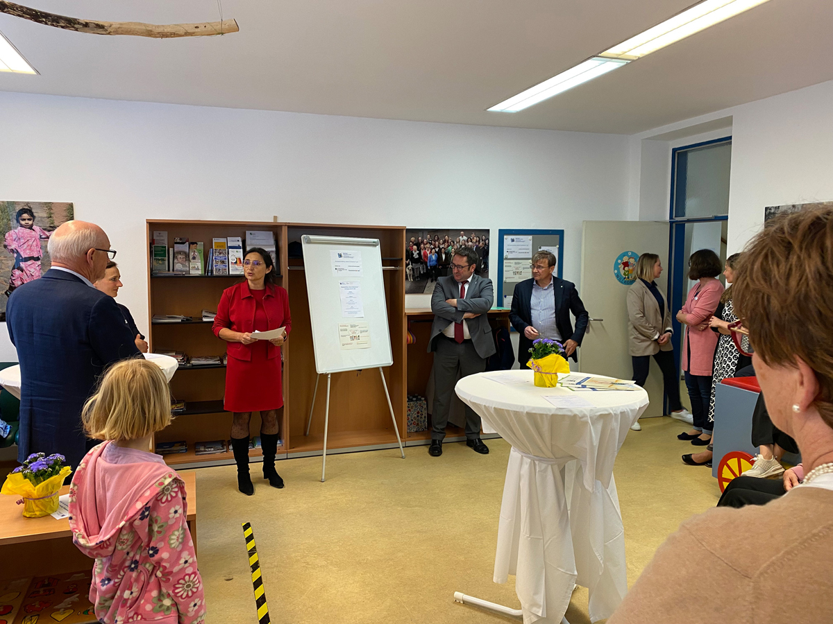 Auch Staatssekretär Tobias Gotthardt MdL würdigte die Ausstellung und das Kinderzentrum St. Martin in seinem Grußwort: „Kinder werden in eine Welt hinein geboren, die Erwachsene gestaltet haben – oftmals leiden sie darunter. Hier erleben wir, dass die Welt bunt ist, dass zeigt uns diese Ausstellung." Sandra Scholz, MAV-Vorsitzende des Kinderzentrums St. Martin, machte deutlich: „Wir wollen im Namen aller Mitarbeiterinnen und Mitarbeiter ein Zeichen setzen, dass rechtes Gedankengut und Diskriminierung hier keinen Platz haben! Deshalb steht ,Willkommen‘ in 19 Sprachen im Eingangsbereich."